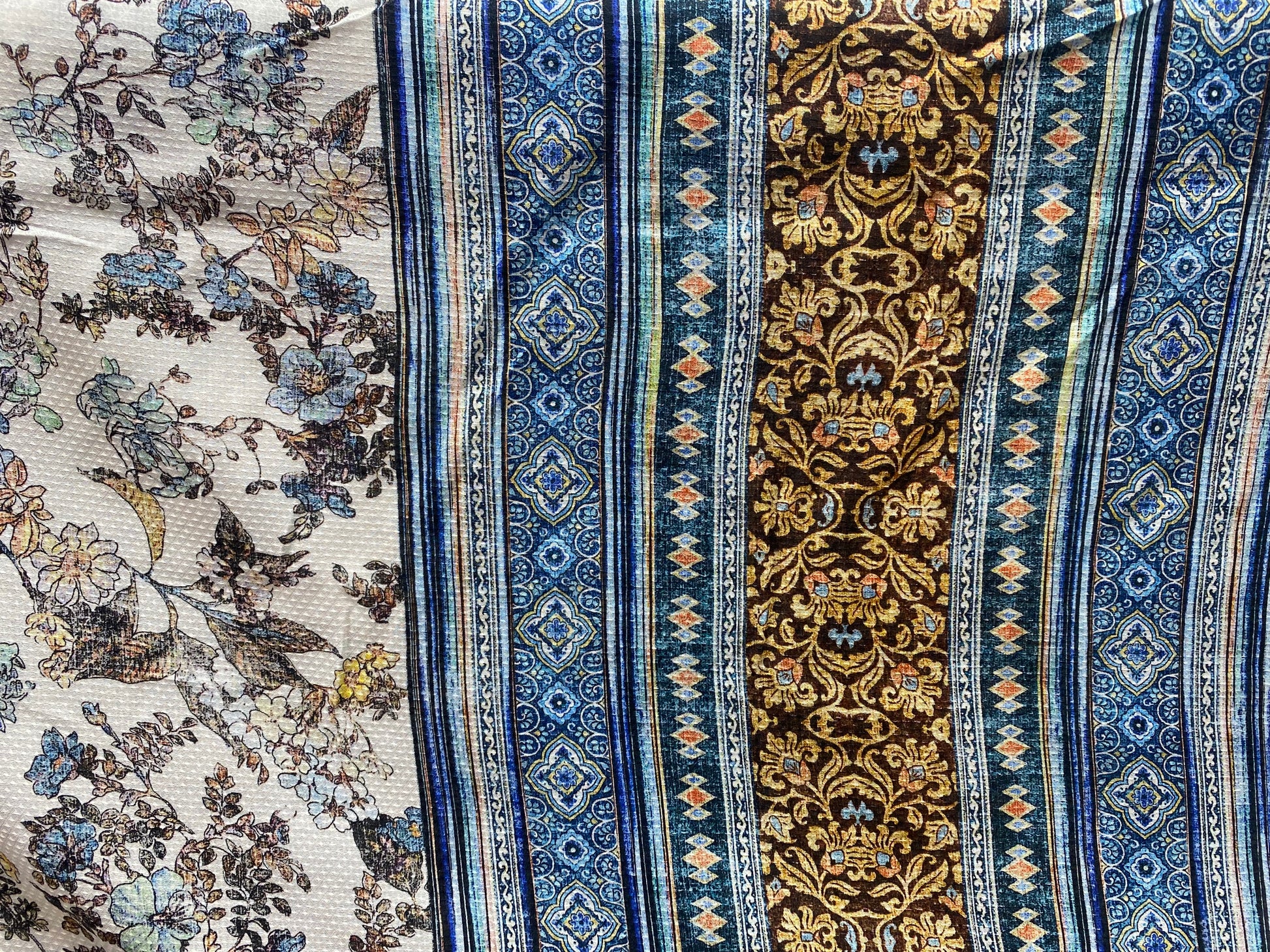 Viscose imprimé fleurs brun jaune blanc bleu