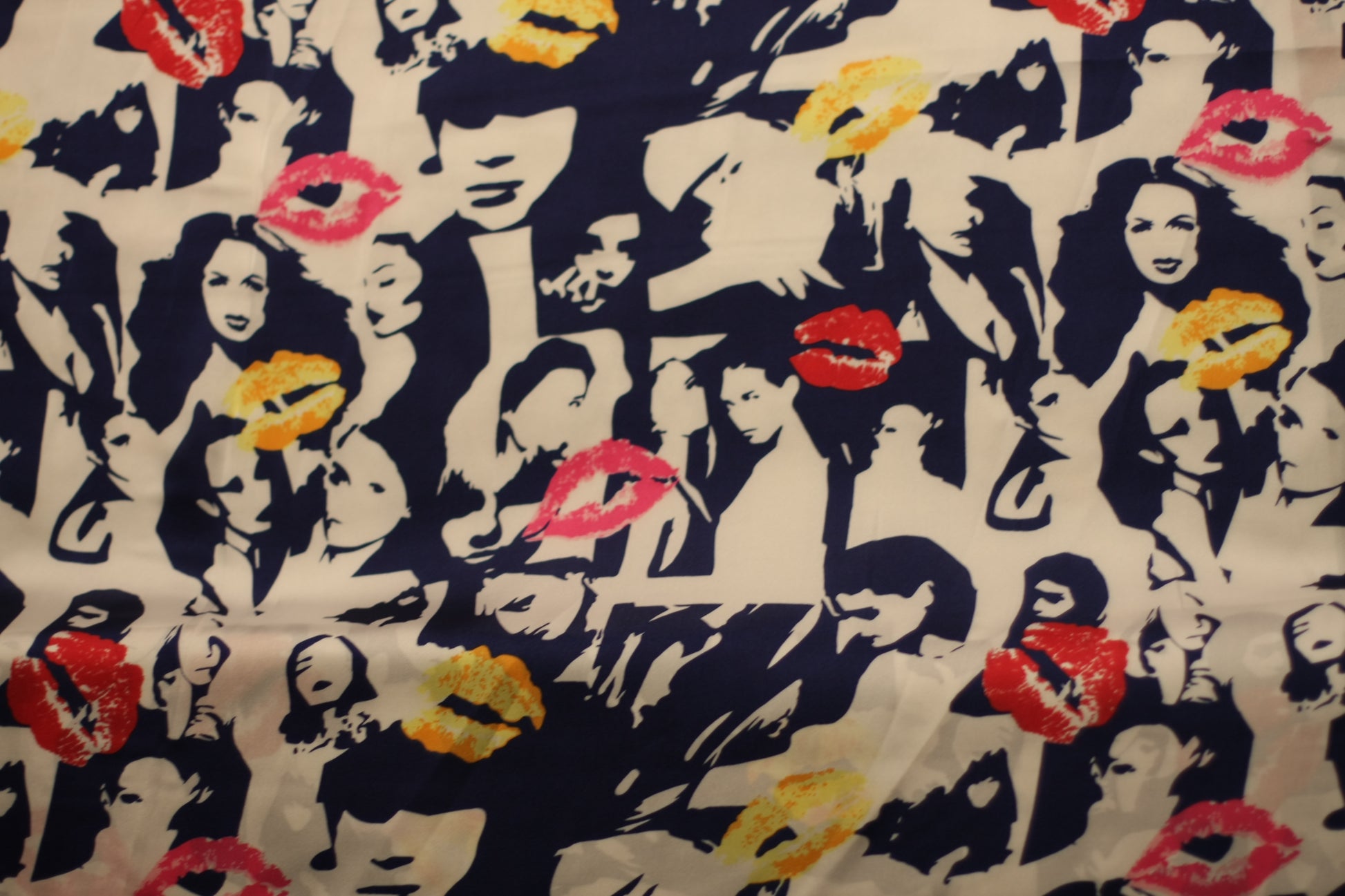 Polyester satin imprimé pop bleu blanc