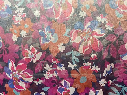 Soie voilage crêpe imprimé fleurs violet bleu rose orange