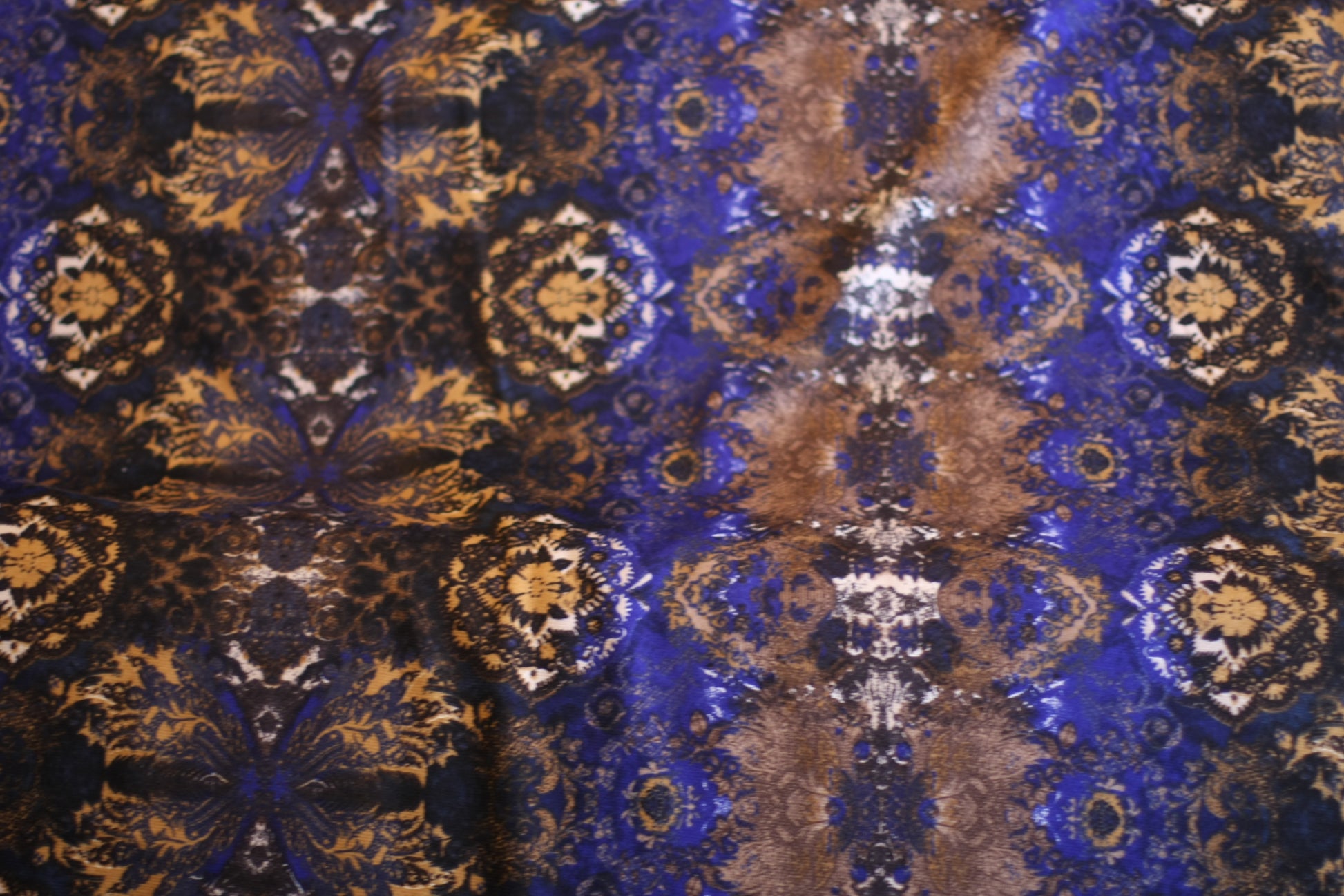 Polyester élasthanne imprimé cachemire brun bleu blanc