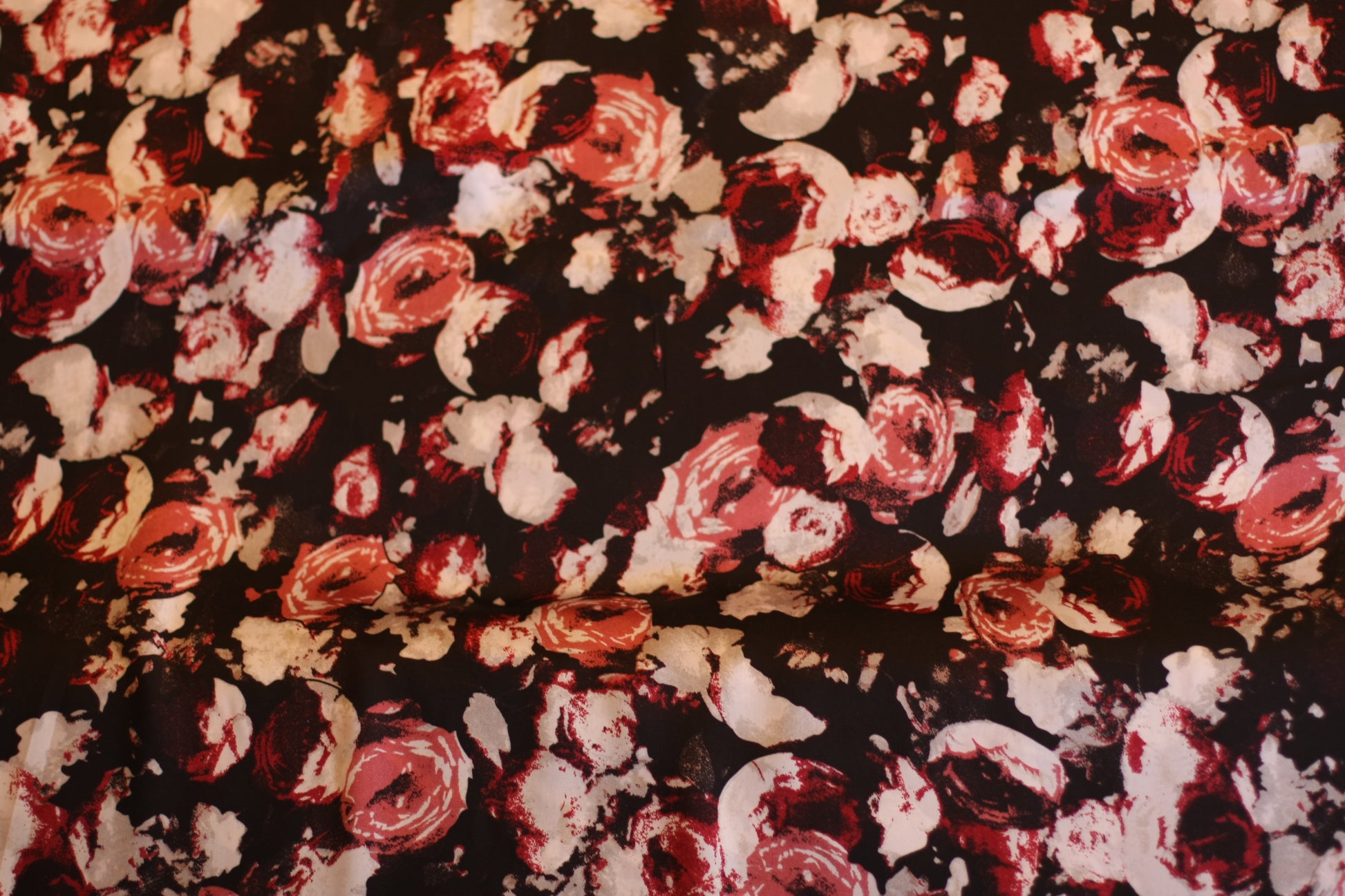 Polyester satin imprimé fleurs noir blanc rouge