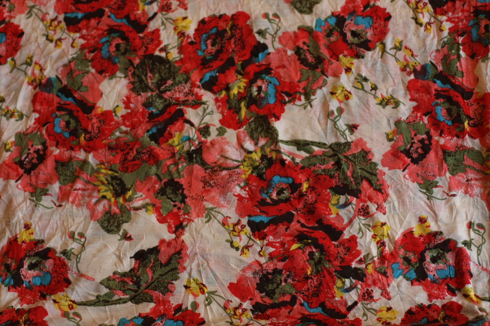 Coton élasthanne imprimé fleurs blanc rouge rose