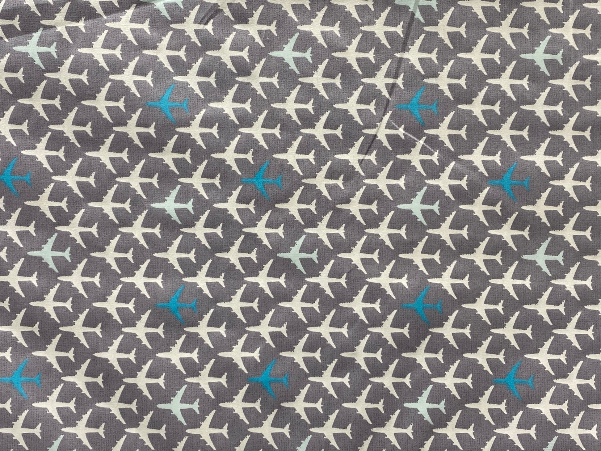 Coton imprimé avions gris blanc bleu