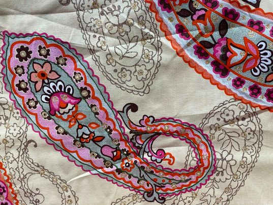 Coton imprimé cachemire fleurs blanc cassé brun rose rouge