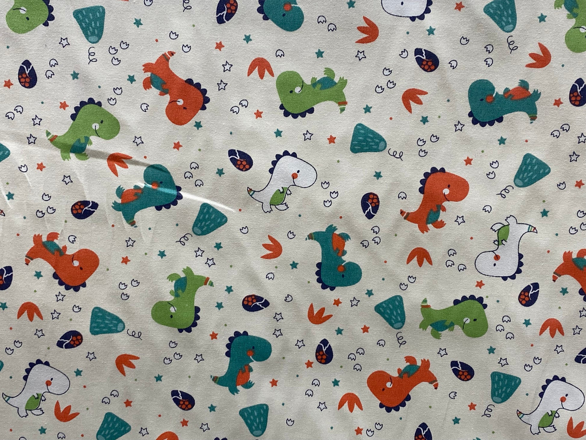 Coton imprimé dinosaures blanc cassé bleu rouge vert blanc