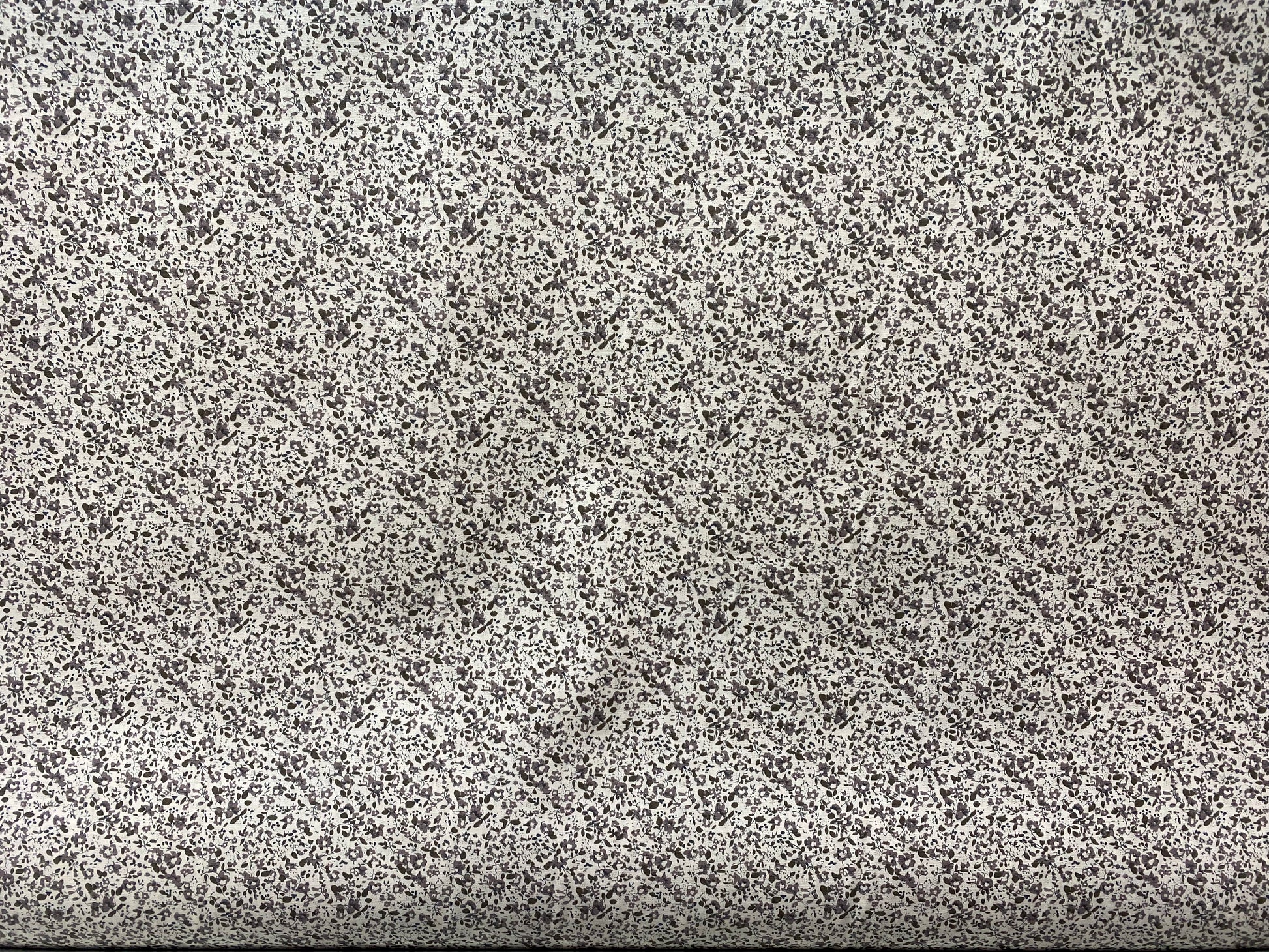 Coton imprimé fleurs blanc brun gris