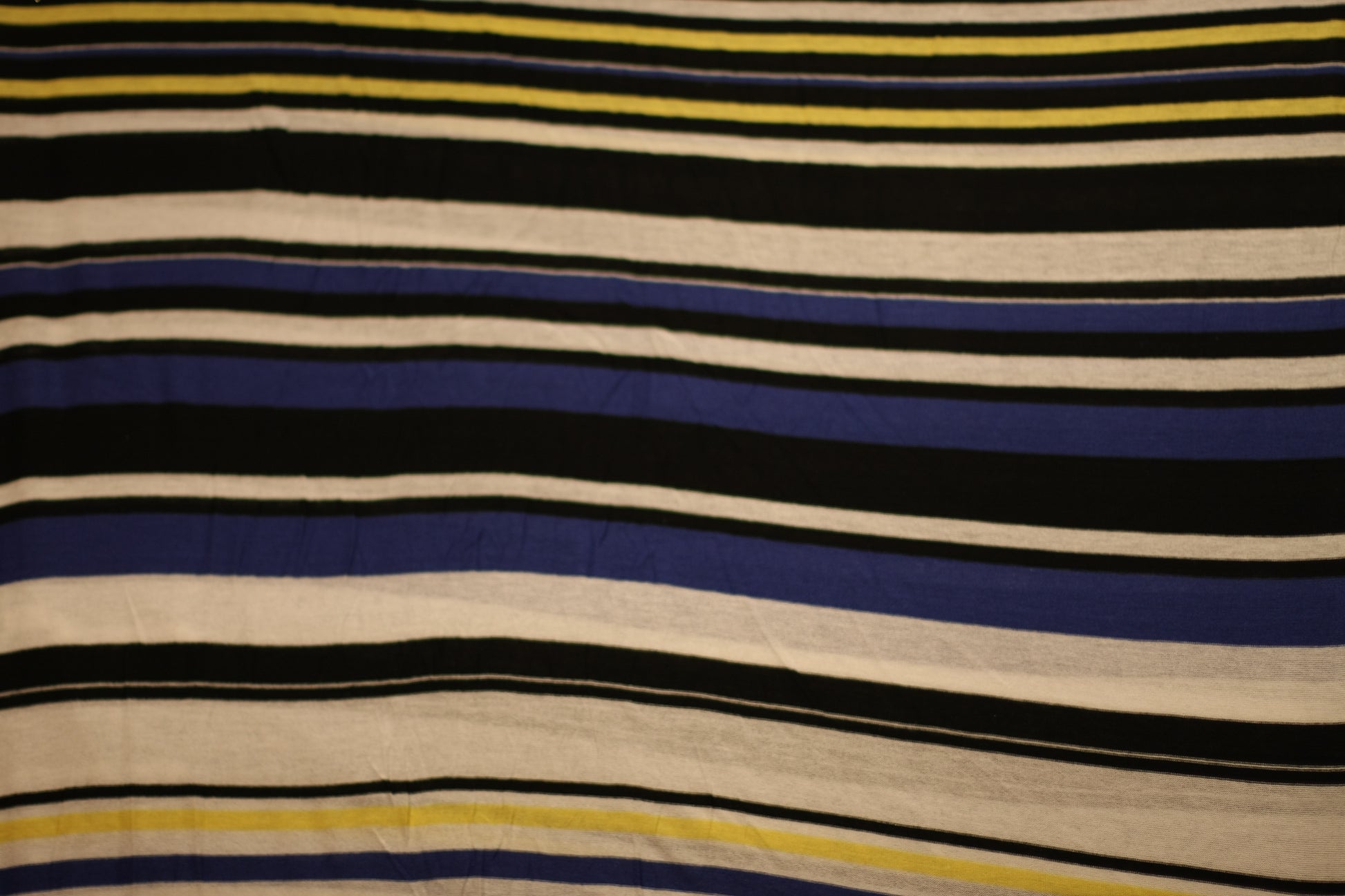 Polyester élasthanne imprimé rayures blanc bleu noir jaune