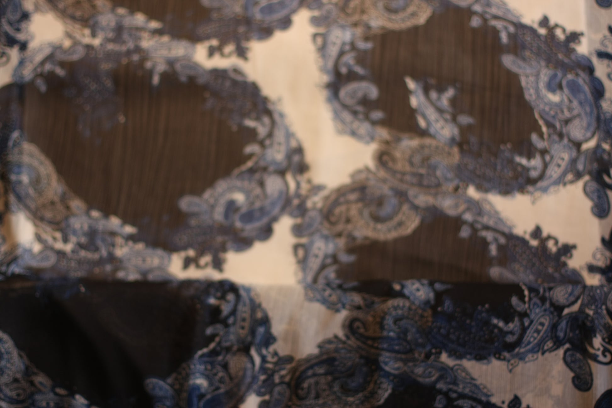 Polyester voilage crêpe imprimé cachemire blanc bleu noir