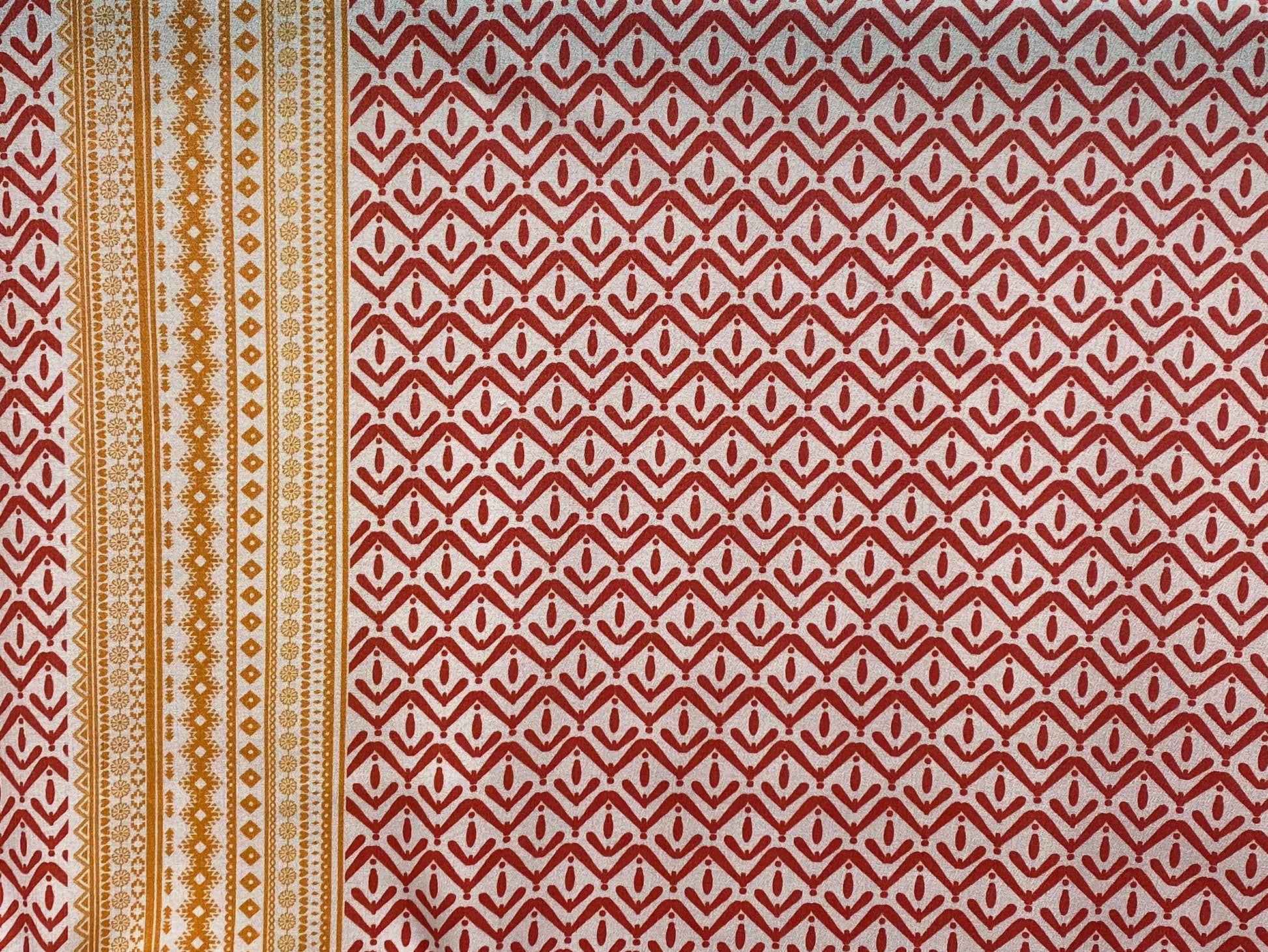 Viscose imprimé carreaux géométrique blanc orange jaune