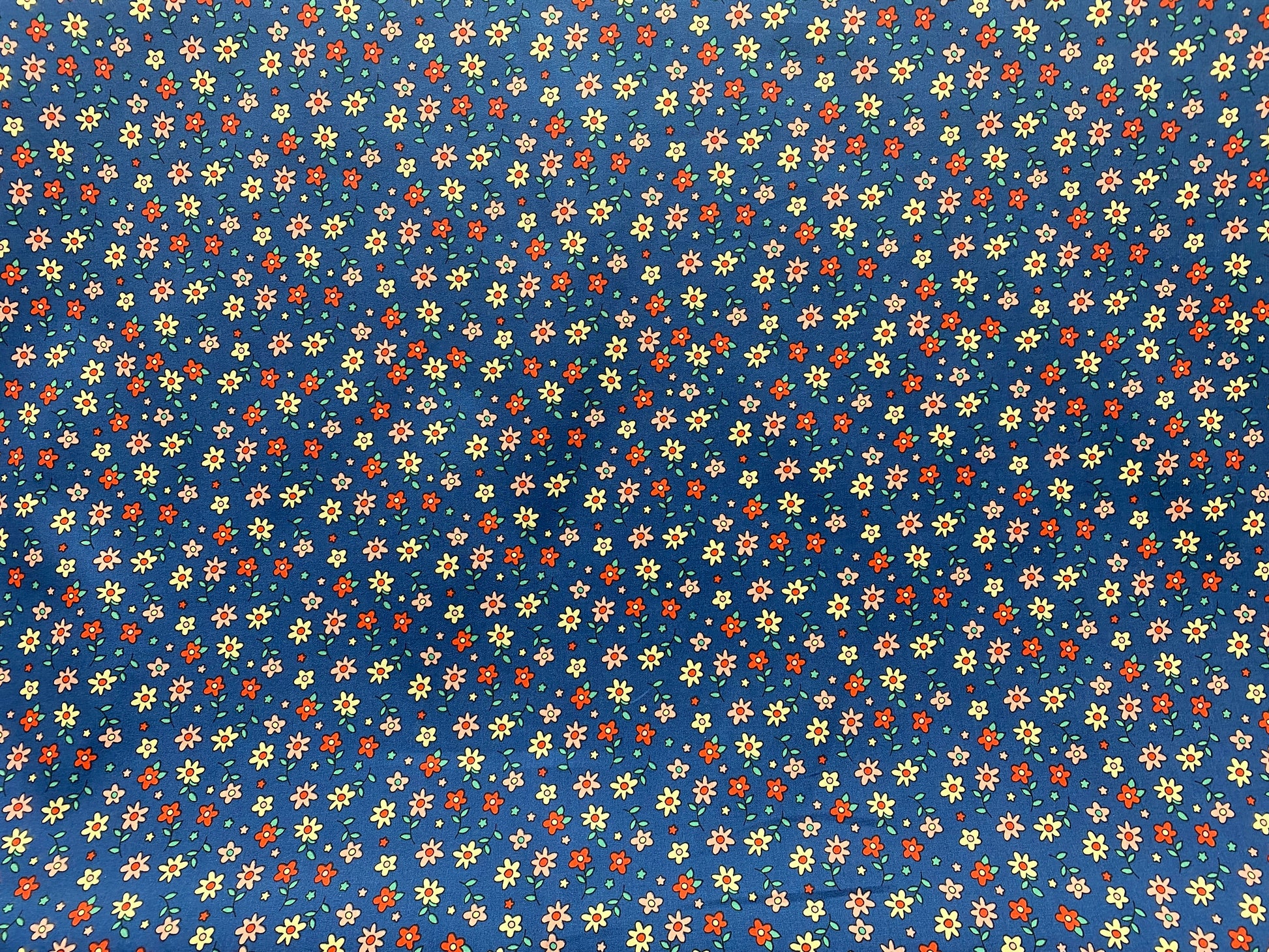 Coton imprimé fleurs bleu jaune rouge rose